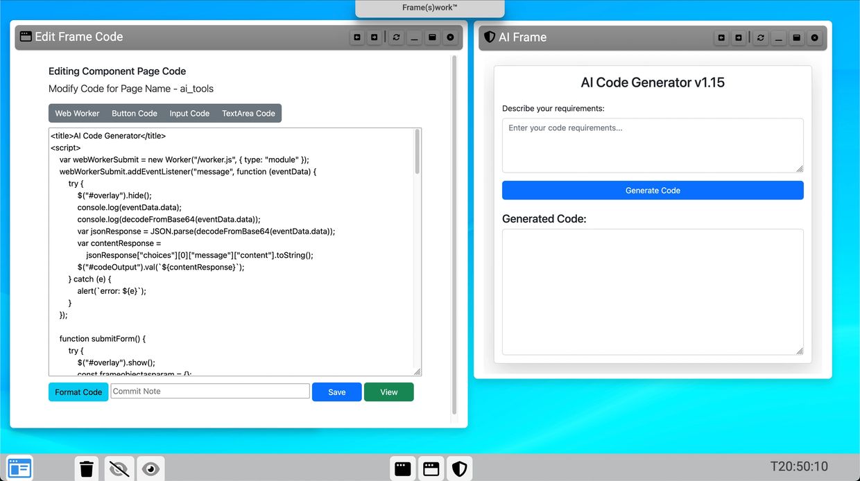 — a modern, web-based desktop experience that reimagines how you interact with applications in the browser. Designed to look and feel like a traditional operating system, Frames lets you launch, arrange, and multitask with web apps in dynamic, resizable windows — all from a single, seamless interface. No downloads, no limits — just a powerful, intuitive environment built for productivity, customization, and performance. Step into the future of web experiences.